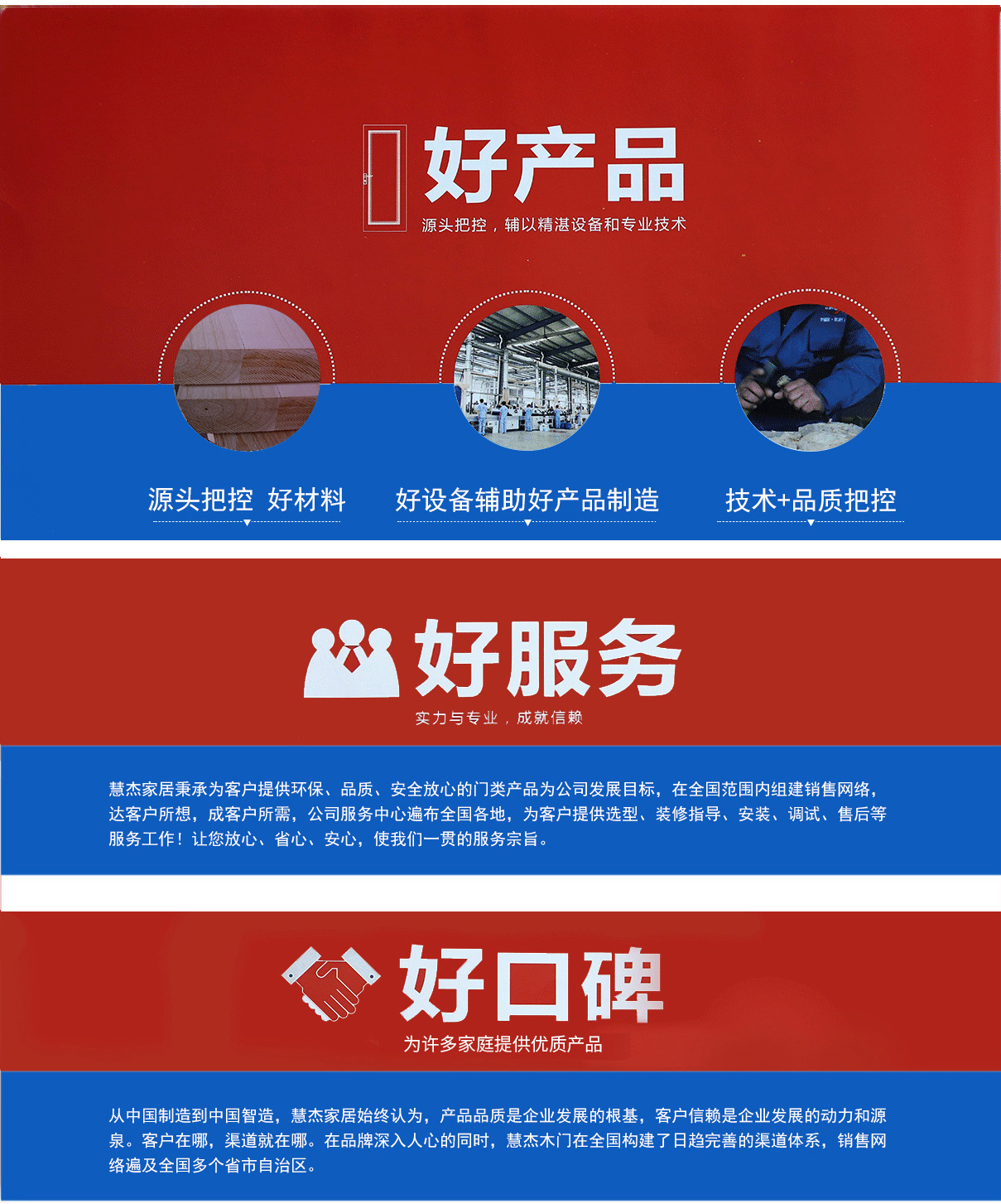 浙江慧杰門(mén)業(yè)有限公司坐落在位于浙江省江山市,這里交通十分便捷,距離高鐵火車(chē)站僅只有半小時(shí)的車(chē)程,距離高速公路江山出口更是方便。本公司是一家專(zhuān)門(mén)從事木門(mén)研發(fā)和銷(xiāo)售服務(wù)為一體的現(xiàn)代化企業(yè),我們以自己的務(wù)實(shí)風(fēng)格,創(chuàng)造精神,科學(xué)管理,為消費(fèi)者提供更好的產(chǎn)品和更好的服務(wù),從而為大家營(yíng)造了一個(gè)又一個(gè),溫馨和諧的幸福大家庭!